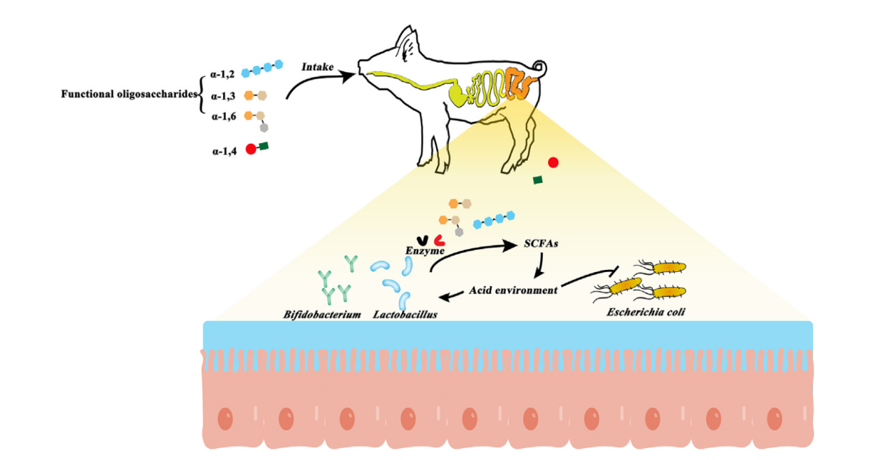 Yeast mannan-oligosaccharide, as a type of prebiotic originated from the yeast cell wall, which could be selectively utilized by the caecal beneficial populations like Bifidobacterium and Lactobacillus spp to form the advantage of beneficial bacteria and have a function in the barrier, nutrition and immunity.