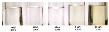 YeaMOS S is from the deep process for yeast cell wall with the water-soluble parts by concentrated for the mannan- oligosaccharide. Solubility of different concentrations of YeaMOS S in water showed as following, we can see that even under the dosage 1%, the solution is still clear and transparent. So YeaMOS S has the good potential used for water system directly, or mixed with other water-soluble products such as organic acid, milk and so on for animal health care.