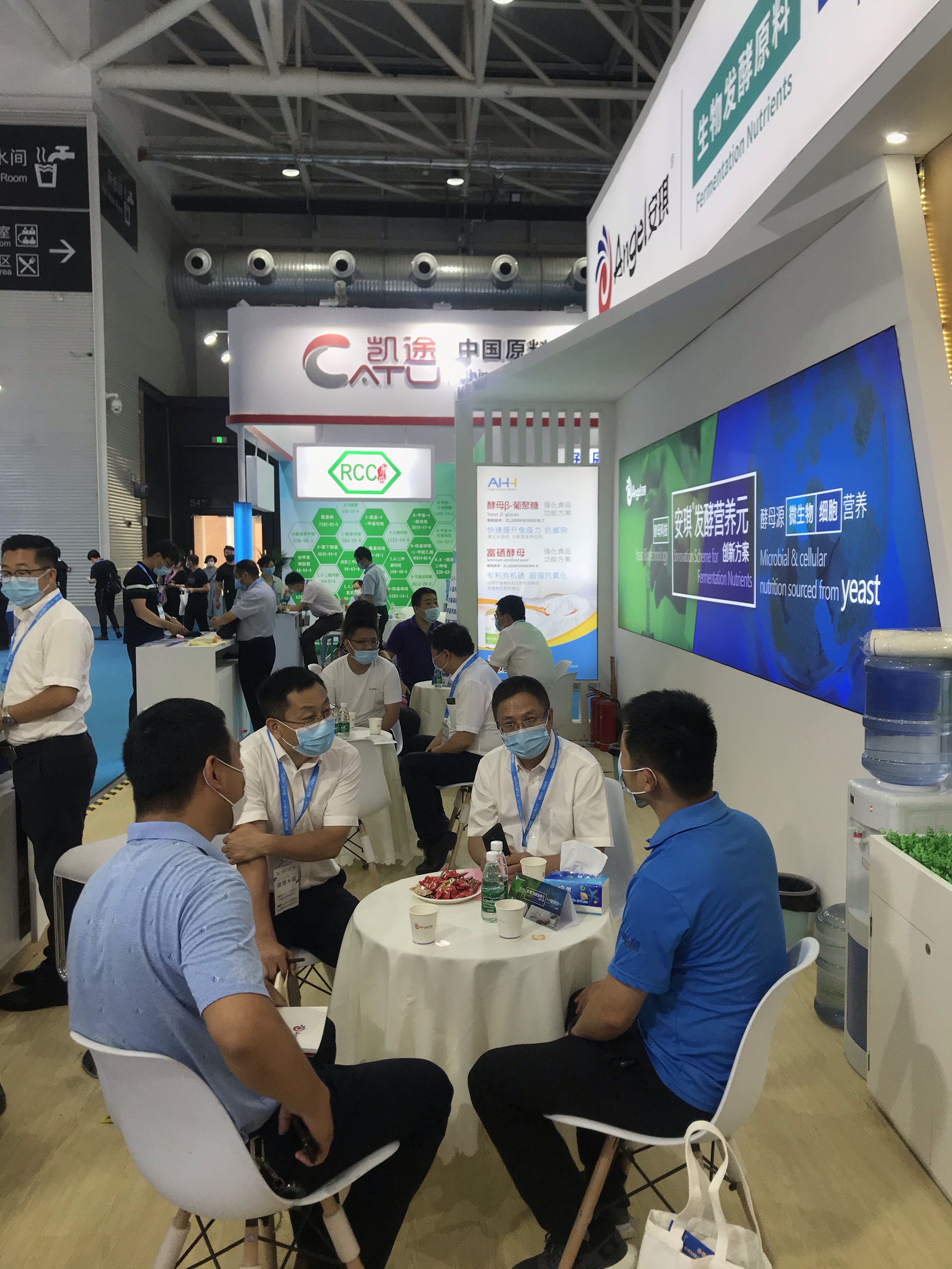 During the exhibition, Wu Zhaohui led relevant business units to introduce products and solutions such as Angel biological fermentation raw materials, functional food raw materials and special enzymes to pharmaceutical industry customers.