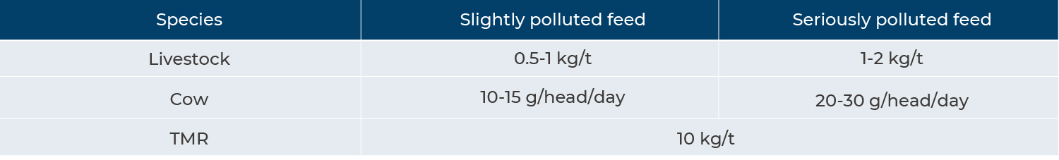 ◉ Adsorção e degradação de micotoxinas.